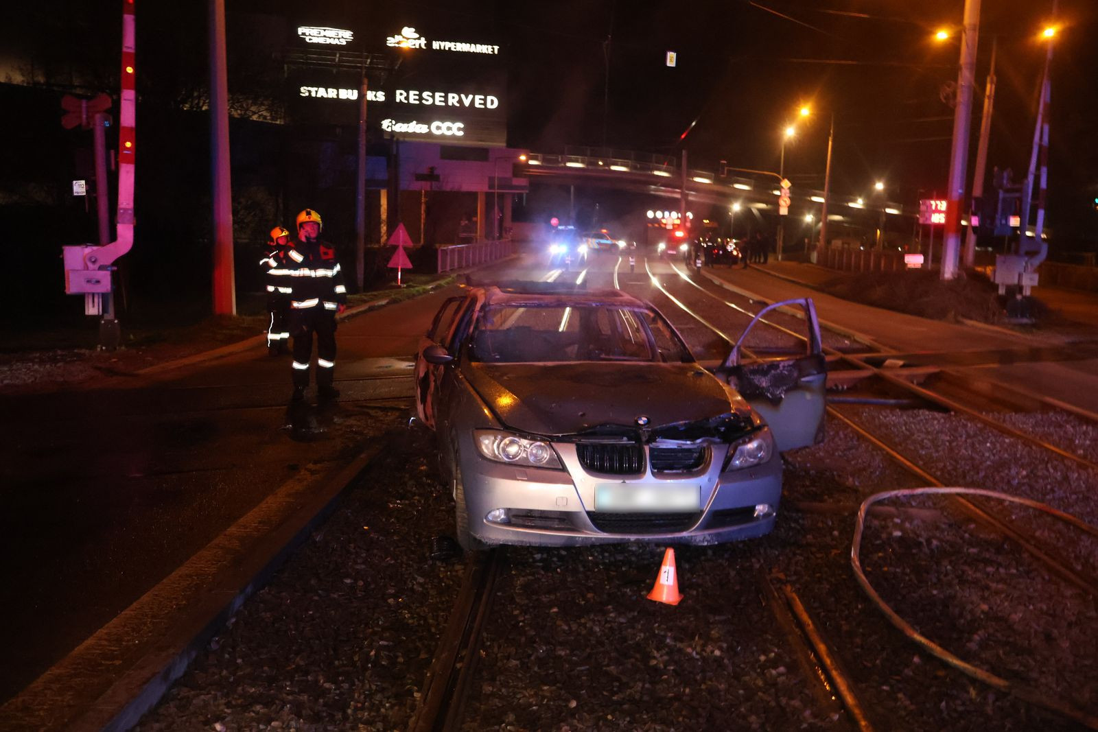„Podle zjištěných informací 22letá řidička jedoucí směrem k Velkomoravské ulici vlivem alkoholu nezvládla řízení vozidla BMW, se kterým vyjela vlevo do prostoru železničních a tramvajových kolejí,“ uvedla policejní mluvčí Ivana Skoupilová. Vozidlo krátce po nehodě začalo hořet.