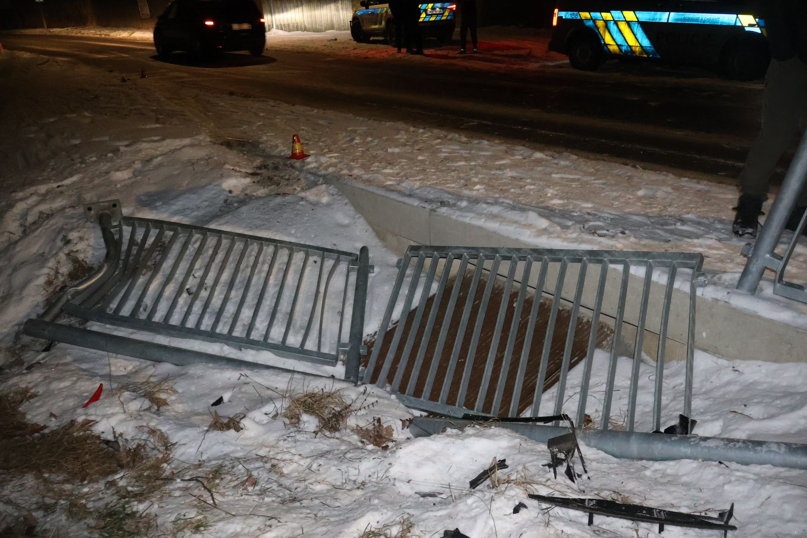 K první nehodě došlo v sobotu 10. ledna před 21. hodinou na silnici III/4451 ve šternberské části Krakořice. Sedmatřicetiletý řidič osobního vozidla BMW nepřizpůsobil rychlost jízdy povětrnostním podmínkám a na náledí dostal smyk. Vyjel mimo vozovku, narazil do kovového zábradlí mostku a skončil v příkopu. Nehoda se obešla bez zranění, dechová zkouška však odhalila téměř dvě promile alkoholu. Škoda byla předběžně vyčíslena na 100 tisíc korun.