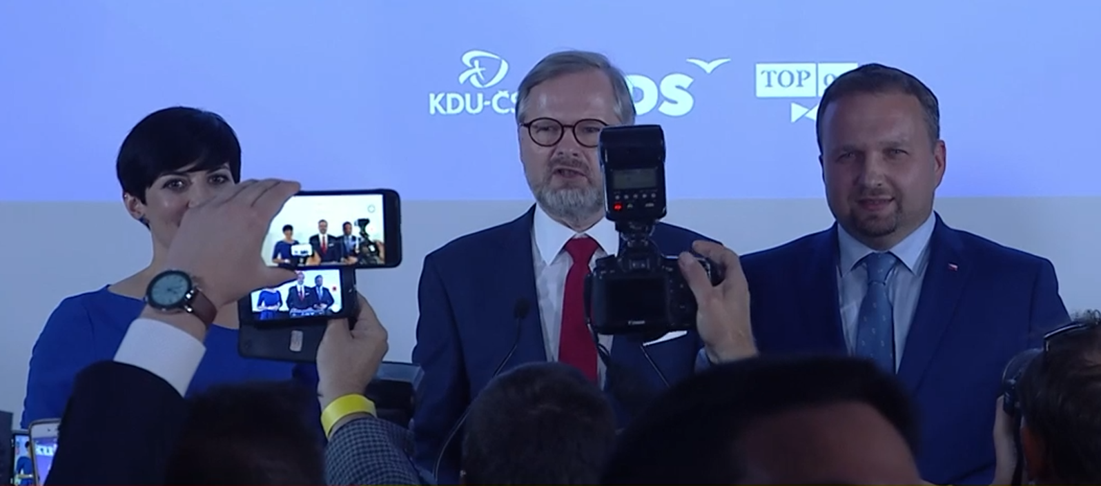 "Demokratické koalice mají šanci postavit většinovou vládu, toto je změna," nechal se během tiskové konference vítěze voleb, koalice SPOLU, slyšet její lídr Petr Fiala. "Změna je tady. My jsme ji slíbili. My ji uděláme," uvedl dále. "Ta změna není blízko, za změna se děje," poznamenala šéfka TOP 09 Markéta Pekarová Adamová.